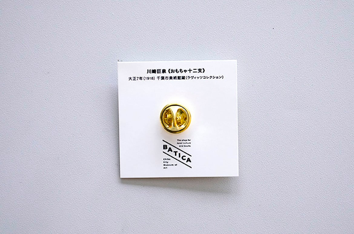 千葉市美術館所蔵、川崎巨泉の作品《おもちゃ十二支》に描かれた犬をモチーフにしたピンバッジ。